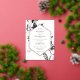 A sophisticated and exquisite floral wedding invitation with a background of beautiful and delicate black and white flowers, accented by a real foil geometrical frame presenting your wedding ceremony details in dark grey serif fonts for a romantic yet modern style.