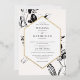 Black & White floral geometrical gold frame Foil Invitation