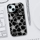 Chic Black White Floral Monogram Initial iPhone 15 Case. A fun but elegant phone case with girly black and white flower outlines. A playful flower pattern frames a chic serif font simple initial monogram. The fun part is you can change out ALL of the colors!! You can not only change the background colors and font, but you can change the lines for the flowers as well.