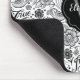 A classy black and white monogram mouse pad decorated with a calligraphy floral pattern. An elegant and chic design. Personalize it for your with your name and initial. Designed for you by Blackberry Boulevard.
