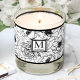Add a touch of elegance to your home with this beautifully designed scented candle, featuring a personalized monogram on two sides of the glass jar. The design wraps around the candle in a soft botanical floral pattern inspired by upscale French perfume packaging and high-end fashion brands, bringing a refined, nature-inspired feel to any space.