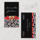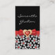 Black white floral pattern with red bow and jewel business card