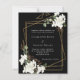 For a classic winter wedding. A black background decorated with white flowers and a faux gold geometric frame. Personalize and add your names and details.