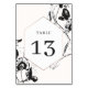 Created to match our "Black & White Flowers Wedding" collection, this contemporary wedding table number features an elegant black and white graphic flowers illustration complemented with a golden geometrical frame and trendy dark grey serif fonts.