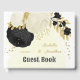 Romantic black & white flowers with gold leaves botanical wedding guest book