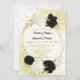 black white flowers gold leaves wedding invitation