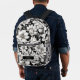 Black White Flowers Monogram Name Camp School Printed Backpack