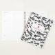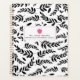 A teacher planner featuring a sketchbook inspired black and white foliage design on front and back. Front features custom text under illustration of a hot pink apple.