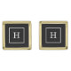 Black White Framed Initial Monogram Gold Cufflinks