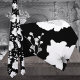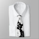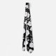 A black and white wedding neck tie featuring a solid black background with white florals of peonies and greenery sprigs.