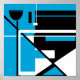 Crop to other standard (portrait/landscape/square) frame sizes or your own personal preference (available in small to large with various proportions and different paper types). Featured is a contemporary design, composed of geometric shapes in black and white shapes and lines on a medium blue background, influenced by the Mid-Century Modern style. An artistic, bold look for home or workspace.