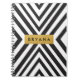 Black & White Geometric Lines Modern Notebook. Customize the front with or without text. The gold area can be left on the design or removed. You may also reposition it anywhere.