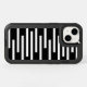 Horizontal white lines form an undulating geometric pattern of stripes of varying lengths which don't extend all the way across the black background. Cases available for other models and devices in the sidebar.