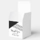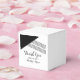 Modern and trendy Geometric Stripe Wedding Favor Boxes with a black triangle and thinly striped accent. These simple yet elegant boxes are set up to be easily customized with your wedding information. Find more customization options by clicking Customize It.