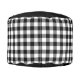 Stylish black and white gingham pattern runs around the side with a solid black top and bottom. The rustic buffalo check plaid is made of black, white, and grey squares.