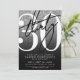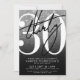 Silver Glitter Black and White 30th Birthday Party Invitation. Celebrate thirty in style with this bold and chic design. The top half features a large white “30” with a sassy handwritten black script “Thirty” layered over it, standing out against a faux silver glitter background that fades into a sleek black gradient. The bottom portion is solid black with party details in a clean sans serif white font for a modern and striking look. Colors for the fonts and background can be customized to fit your theme.