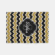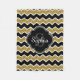 Stylish, trendy black, white, and faux gold glitter chevron zigzag pattern with a quatrefoil label frame on top featuring a customizable monogram initial letter and name template.