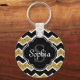 Stylish, trendy black, white, and faux gold glitter chevron zigzag pattern with a quatrefoil label frame on top featuring a customizable monogram initial letter and name template.