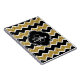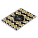 Stylish, trendy black, white, and faux gold glitter chevron zigzag pattern with a quatrefoil label frame on top featuring a customizable monogram initial letter and name template.