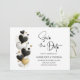 Let your friends and family know about your special day in style with this black, white and gold hearts wedding save-the-date card. The easy-to-use text templates make adding all the necessary information a quick and simple task. With a variety of paper types and corner styles to choose from, you can create truly unique cards that reflect your individuality, along with the option to download if you prefer a digital format.