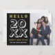 Black White Gold Hello Happy New Year Family Photo Holiday Card