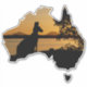A beautiful black, white and gold sticker / decal with a gorgeous sunset image featuring (the outline of) a kangaroo, a tree and the world famous Glass House Mountains in Queensland, Australia. The spectacular golden sunset gives the image great color. To make this sticker even more special, the photo is in the shape of the country Down Under. It's an amazing laptop, phone or car decal, stick it to your suitcase to identify your luggage, or decorate anything else you like. Get a copy for yourself and one as a gift for your friends or family!