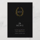 Black white gold leaf oval monogram wedding menu