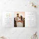 Black white gold oval leaf monogram wedding photo Tri-Fold program