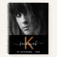 A chic black background. Personalize and add your own photo, a name, monogram letter and a year. The name is written in white with a large modern hand lettered style script with swashes. Golden monogram letter. For school, work as a sketchbook, diary and journaling. To keep the swashes only delete the sample name, leave the spaces or emoji's in front and after the name