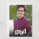 Be proud, rejoice and showcase this milestone of your favorite grad! Send out this stunning, simple, modern, personalized photo announcement for an event to remember. Bold, graphic, white typography overlays a photo of your choice. Personalize the custom text with your grad’s name, school and class year. On the back, under the bold “congrats” graphic, add your personal note, next school they’re attending – or whatever else you want to share. Matching invites, thank you cards, cap toppers, napkins, plates and other graduation goodies are also available in this trendy and stylish collection. Guaranteed to add stylish fun to their special occasion!