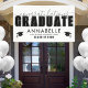 Designed for versatility, this banner works well as a backdrop for photos, a party entrance display, or a decorative focal point. The overall black and white look keeps it timeless and sophisticated, but all colors—including the text and cap icons—can be customized to match school colors or personal preferences. A stylish and memorable way to honor the graduate’s hard work and achievements!