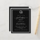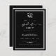 A modern, elegant and invitation. A black background decorated with white frames and a white cap. Personalize and add a name and party details. White text.