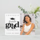 Announce to the world that your favorite grad has reached their milestone with this stunning, simple, modern, personalized announcement. Bold, graphic, black typography and cap icon overlay a white background. On the right hand side, add a photo of your choice. Personalize the custom text with your graduate’s name, school name, and class year. Matching and coordinating thank you cards, cap toppers, fans, napkins, plates, banners and other graduation goodies are also available in this trendy and stylish collection. Guaranteed to add stylish fun to their special occasion!