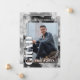 Unique and trendy congratulations graduate announcement and celebration party invitation card, framed with a stylish light and dark gray, black and white colored abstract brushstrokes background. With room to customize or personalize with a photo, the name of the graduate, class graduation year, high school, future college or university name, and celebration party event information. Let the family, friends and neighbors know there is a happy graduate ready to conquer the world, and invite everybody to come celebrate the happy event with you!