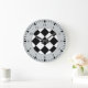 A wall clock with a racing theme of black and white squares on the face, black numbers and the minutes marked in black on gray. Click Customize It to change background colors and more.