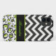 A trendy design with black and white chevron pattern and coordinating green, white and black animal print with black band accent, perfect for personalizing with name or monogram, if desired.
