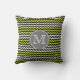 Black White Green Chevron Zigzag Monogram Throw Pillow