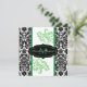 Black, White, Green Damask Scroll Wedding Invite