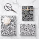 Black White & Grey Abstract Flower Paisley Pattern Wrapping Paper Sheets
