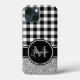 Black White Grey Glitter Buffalo Plaid Monogram Case-Mate iPhone Case