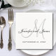 Black White Grey Monogram Elegant Script Wedding Napkins