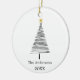 Black white hand-drawn Christmas tree family name Ceramic Ornament