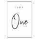 Simple and chic table number cards in classic black and white make an elegant statement at your wedding or event. Design features "table [number]" in an eyecatching mix of classic serif and handwritten script lettering. Design repeats on both sides. Individually numbered cards sold separately; order each table number individually from our collection.