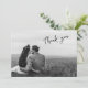 Modern simplicity meets elegant botanicals. This wedding thank you card features a beautiful mix of flowing handwriting inspired white script on a dark nearly-black background, accented with an elegant black botanical illustration. The perfect card to showcase your wedding photos and express sincere thanks.