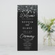 The black background adorned with delicate hanging lights creates a magical ambiance, symbolizing the love and light that surrounds your union. The white text stands out beautifully against the dark backdrop, ensuring that every detail of your wedding program is elegantly presented.