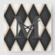 This elegant custom clock has a large monogram on a background of a black and antique white Harlequin pattern. A trompe l'oeil effect makes the monogram appear 3-dimensional.