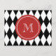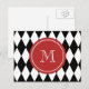 This trendy, mod, black and white harlequin diamond pattern is a perfect background for a red and white circle tag with your initial on it in white text in an elegant font. GraphicsByMimi© Personalize this fun, bold, modern yet retro black checkered pattern design with your monogram, text, initial or name. Use the template field or use the "customize it" option for a full edit menu. A classic, traditional style emerging as a new fashion trend. Other colors available.