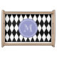 Black White Harlequin Pattern, Violet Monogram Serving Tray