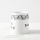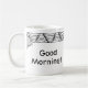 This personalized latte mug is a stylish and unique creation that combines simplicity with a touch of artistry. The design revolves around a stunning Black and White Heat Wave Border that encircles the mug's exterior, adding an elegant and modern flair. Good Morning!