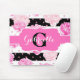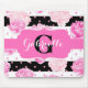 Black & White Horizontal Stripes Floral Monogram Mouse Pad